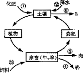 14.(10包头三十三中期中)下图是某农牧生态系统氮循环平衡示意图。据图分析,正确的是 ( )