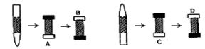 11.(10广东五校高三质检)下图表示用胚芽鞘中段和含生长素的琼脂小块(黑色方框)做的一组实验,过一段时间后测定原先不含生长素的琼脂小块(方框表示)中含有生长素的是 ( )