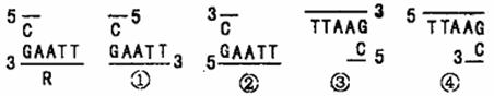 9.(10临颖高三月考)DNA分子有两条链组成,两链是反向平行的。每条链连接磷酸基团的一端用5作标记。另一端标记为3,下列①②③④四条DNA分子片段中,可以和R片段之间通过粘性末端结合的是( )