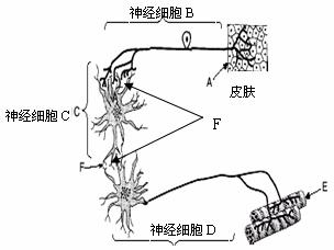 C.神经细胞B分布在皮肤中的部分和神经细胞D分布在E中的都是它们的轴突