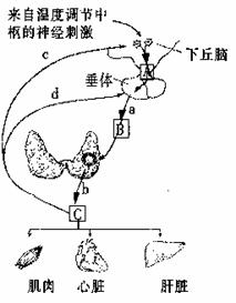 (1)寒冷时的体温调节以____ 为主,与C具有协同作用的调节物质是________