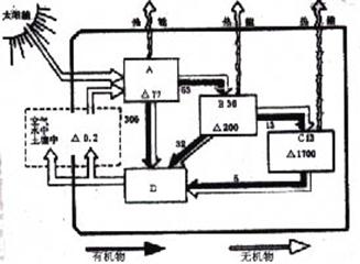 6.(1)它是能量流动和物质循环的基础(2)466(3)13.5%、20%;呼吸作用,热能;逐渐递减单向不循环(4)水;分解者;有氧呼吸;发酵;保证物质的再利用(5)能量流动(6)空气,水,土壤;食物链;营养级;