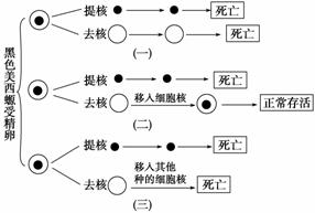 17.(2010·青岛模拟)研究人员用黑色美西螈的受精卵做了如下实验,请据图分析: