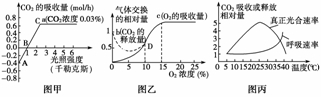 (5)在图甲和图乙中绘制下列有关曲线:①图甲中光合作用强度是用CO2吸收量(mol/h)表示的,请改用O2的吸收量(mol/h)表示光合作用强度,并在图甲中再绘出光合作用强度与光照强度的关系曲线;②在图乙中再绘出无氧呼吸CO2的释放量与O2浓度的关系。