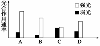 4.(2010·厦门模拟)在适宜的温度、水分和CO2条件下,测定A、B、C、D四种植物分别在强光和弱光的光合作用速率,其中属于最典型阴生植物的是( )
