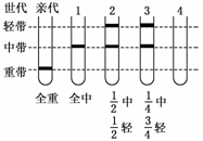 (3)如果将第一代(全中)DNA链的氢键断裂后再测定密度,它的四条DNA单链在试]