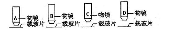 34.用显微镜的一个目镜分别与4个不同倍数的物镜组合来观察血细胞涂片。当成像清晰时,每一物镜与载玻片的距离如图所示。如果载玻片位置不变,用哪一物镜在一个视野中看到的细胞最大?