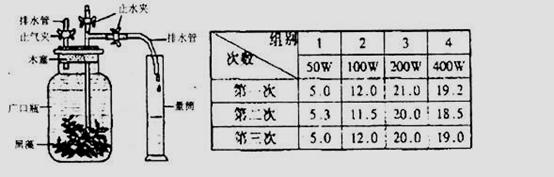 实验材料和用具:lOOmL量筒、50W、1OOW,、200W和400W的台灯、冷开水、