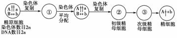 11.(2010·徐州模拟) 下图为精原细胞增殖以及形成精子过程示意图。图中标明了部分染色体与染色体上的基因。设①③细胞都处于染色体的着丝点向两极移动的时期。下列关于图解叙述正确的是( )