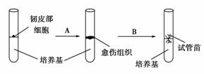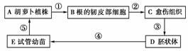 7.下图所示胡萝卜的韧皮部细胞通过无菌操作,接入试管后,在一定的条件下,形成试管苗的培育过程,请据图回答下列问题: