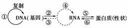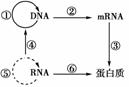 [解析] 该表达式中的①②⑤过程中都能在动植物细胞中发生;③④只能发生在被感染RNA病毒的细胞生物体内;⑥过程迄今为止尚未发现。