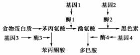 11.人类白化病和苯丙酮尿症是由于代谢异常引起的疾病,如下图表示在人体代谢中产生这两类疾病的过程。由图中不能得出的结论是( )