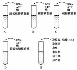 ①请将此图解中a-e过程与上图A-E各试管所模拟的内容对应起来:a对应_________,b对应_________,c对应_________,d对应_________,e对应_________。