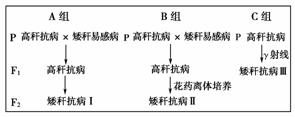 16.普通小麦中有高秆抗病(TTRR)和矮秆易感病(ttrr)两个品种,控制两对性状的基因分别位于两对同源染色体上。实验小组利用不同的方法进行了如下三组实验: