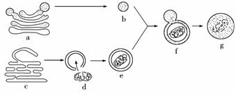(1)b是刚形成的溶酶体,它起源于细胞器a;e是由膜包裹着衰老细胞器d的小泡,而e的膜来源于细胞器c。由图示可判断:a是 ,c是 ,d是 。
