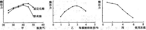 (2)乙图曲线表明浓度为________的海藻酸钠包埋效果最好,当海藻酸钠浓度较低时,酶活力较低原因是___________。
