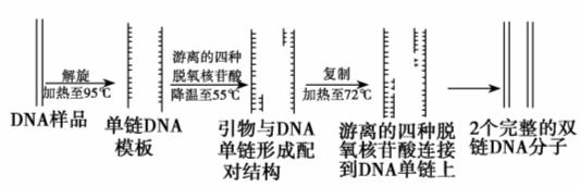 5.近10年来,PCR技术(聚合酶链式反应)成为分子生物学实验室的一种常规手段,其原理是利用DNA半保留复制,在试管中进行DNA的人工复制(如下图),在很短的时间内,将DNA扩增几百万倍甚至几十亿倍,使实验室所需的遗传物质不再受限于活的生物体。