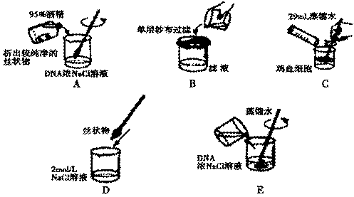 (5)为实验中所得到的丝状物的主要成分为DNA,可滴加___________试剂,沸水浴,如果出现____________则该丝状物的主要成分为DNA。