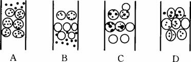 21.相对分子质量不同的蛋白质在凝胶中的进行过程可表示为图中哪一个 ( )