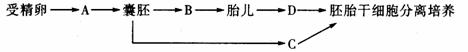 (2)细胞B取自囊胚的 ,具有全能性,称为 细胞。囊胚 ___(已经/尚未)出现分化。