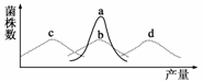 [解析] 使用诱变剂后,青霉菌产生青霉素的产量有的更多,有的更少,说明诱变剂可大幅度改变某些性状。b、c、d三曲线比较说明诱变可提高变异频率,改变菌株性状,但不定向;d曲线对应的菌株产量高,符合人们要求。