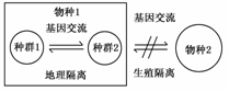 C.物种1形成物种2的必要条件是地理隔离