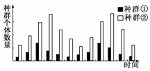 [解析] 判断捕食与被捕食关系不能依据种群的个体数量确定,因为生物的数量金字塔可以倒置,应该根据数量变化的因果关系。注意此图是用柱状图表示了两个种群的数量变化,将种群的不同数量连接起来即可将柱状图转化成曲线图,可以分析出种群①变化在先,是因,是被捕食者;种群②变化在后,是果,是捕食者。只有D选项符合。