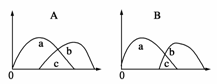 10.(2009·齐齐哈尔高三期末)下图表示共同生活在一起的两个种群,一个种群主要以a为食,另一个种群以b为食,它们所吃的食物有些是共同的,以c表示。(图B表示A经过自然选择形成的结果)。下列关于种群的描述不正确的是 ( )