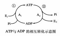21.(8分)在活细胞中,下图中的循环过程永不停止地进行着。请运用所学的知识,分析回答ATP和ADP循环中的有关问题。