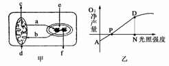 22.(6分)(2009·乐山模拟)如下图所示,甲图表示某大棚蔬菜叶肉细胞的部分结构和相关代谢情况,其中a-f代表O2或CO2。图乙表示该植物在适宜的条件下,O2净产量(光合作用的O2产生量-呼吸作用的O2消耗量)与光照强度之间的关系曲线。据图回答下列问题: