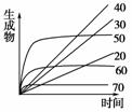 [解析] 图中表示出了影响生成物积累的两个变量因素(即时间和不同温度),由图上曲线可看出,在一定温度范围内随温度升高酶活性增强,生成物积累速度随时间增加,超过一定温度,生成物积累量不再随时间增加,说明酶反应有最适温度,高温使酶失活。