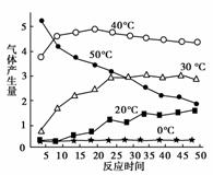 8.如下图所示表示不同温度下酵母菌发酵时气体产生量与反应时间的关系。由图可知( )