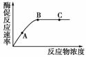人体内某种消化酶在体外适宜温度条件下,反应物浓度对酶促反应速率的影响如右图所示。对于图中A、B、C三点,随着反应物浓度的增加,反应速率可能受酶自身某种因素影响的是( )