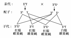 (3)因为本果蝇为雄性且为红眼,所以其基因型为XAY,所以另一只为雌性,又因为它们产生的后代中出现隐性性状,所以推知雌性为XAXa,由此知子代隐性性状个体基因型XaY,为雄性。