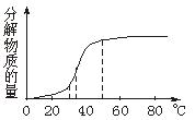 8.下图表示某有机物加入某种酶后在0-80 ℃的环境中,有机物的分解总量与温度的关系图,依图判断,在0-80 ℃环境中,酶的活性变化曲线(pH适宜)正确的是 ( )