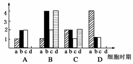 [解析] 染色体没有复制时,染色体与DNA之比为1?1,无染色单体(A);染色体复制后,染色体?染色单体?DNA=1?2?2(B),C表示减数第二次分裂,D为生殖细胞中染色体?DNA=1?1,无染色单体。由此得出b为DNA数,c为染色体数,d为染色单体数。