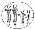21.(8分)(2009·湖南高三联考)下图为某二倍体高等动物细胞示意图,其中A、B、C、D代表四条染色体,其上分别有基因R、r、M、m,请据图回答: