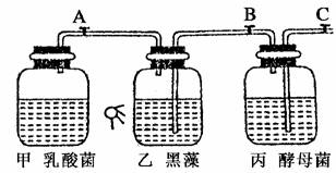 (1)关紧A、C,打开B,给乙充足光照,则丙中酒精的产量将________,原因是________________________________________________________________。