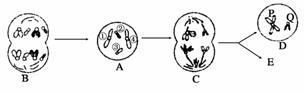 [解析] 考查细胞分裂。该器官的细胞发生的分裂既有有丝分裂又有减数分裂。E期细胞内无同源染色体,染色体的着丝点完成了分裂,所以处于减数第二次分裂的后期;B细胞内有两条染色体,每条染色体上有2分子的DNA,一共含有4分子的DNA;C和D细胞发生的都是有丝分裂,C处于有丝分裂后期,细胞内有8条染色体,D处于有丝分裂中期,细胞内有4条染色体,所以该动物的体细胞也含有4条染色体。