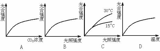 36.光合作用的正常进行要受多种因素的影响,一个生物兴趣小组研究了CO2浓度、光照强度和温度对光合作用的影响,下面是一位同学根据实验结果绘制的一组曲线,你认为正确的是