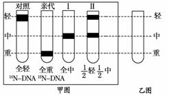 (2)将第一代(Ⅰ)细菌转移到含15N的培养基上繁殖一代,将所得到细菌的DNA用同样方法分离,请参照甲图,将DNA分子可能出现在试管中的位置在乙图中标出。