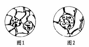 解析:图1为低倍镜物像,图2为高倍镜物像,由图1到图2因视野范围变小,必须先移动标本将物像调到视野中央,再换高倍物镜,调整细准焦螺旋,但一定不能转动粗准焦螺旋。