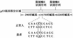 (3)已知限制酶E识别序列为CCGG,若用限制酶E分别完全切割正常人和患者的p53基因部分区域(见上图),那么正常人的会被切成________个片段;而患者的则被切割成长度为________对碱基和________对碱基的两种片段。