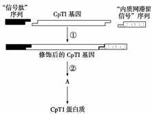 (1)CpTI基因是该基因工程中的________基因,“信号肽”序列及“内质网滞留信号”序列的基本组成单位是________________,A物质的基本单位是______________,在①过程中,首先要用________酶切开,暴露出________,再用________酶连接。