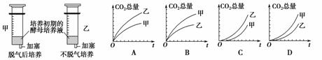 解析:酵母菌既能进行有氧呼吸又能进行无氧呼吸,两种呼吸产物中都有二氧化碳,但分解同样多的葡萄糖时,有氧呼吸的产气量比无氧呼吸要多,所以甲脱气后应进行无氧呼吸,乙不脱气应先进行有氧呼吸,其产气要快,产气量比甲要多。