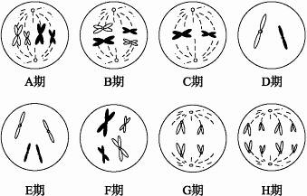 解析:本题考查有丝分裂、减数分裂各时期图像的比较。A为有丝分裂中期,B为减数第一次分裂中期,C为减数第二次分裂中期,D为减数第二次分裂末期形成的细胞,E为有丝(减数第一次)分裂间期,F为有丝(减数第一次)分裂前期,G为减数第二次分裂后期,H为有丝分裂后期。