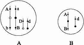 (3)请参照图A和图B,绘出由该精原细胞经减数第一次分裂形成的两个次级精母细胞在后期时的情形。