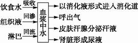 解析:结合人的饮食及三种细胞外液的转化关系,血浆内的水来源及去向可表示如下: