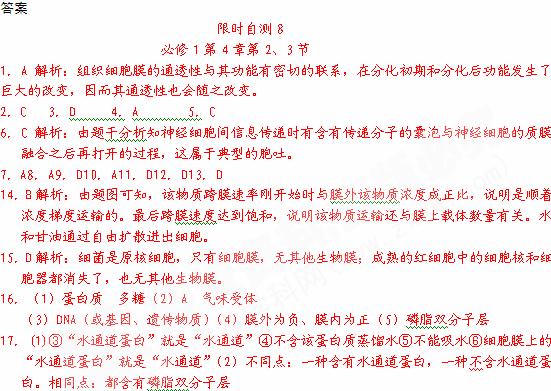 17. (14分)20世纪50年代,科学家发现,细胞膜中存在着某种只允许水分子出入的通道,人们称之为水通道,但水通道到底是什么却一直是个谜。20世纪50年代中期,美国科学家彼得·阿格雷研究了不同的细胞膜蛋白,经过实验,他证明了一种被称为“水通道蛋白”的细胞膜蛋白就是人们寻找已久的“水通道”。如何验证彼得·阿格雷发现的水通道蛋白就是水通道?请你完成下面的实验探究并回答下面的问题。