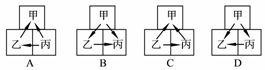 3. 下图中甲、乙、丙表示某植物体相邻的3个细胞,它们的细胞液浓度依次为甲>乙>丙,正确表示它们之间水分子渗透方向的是( )